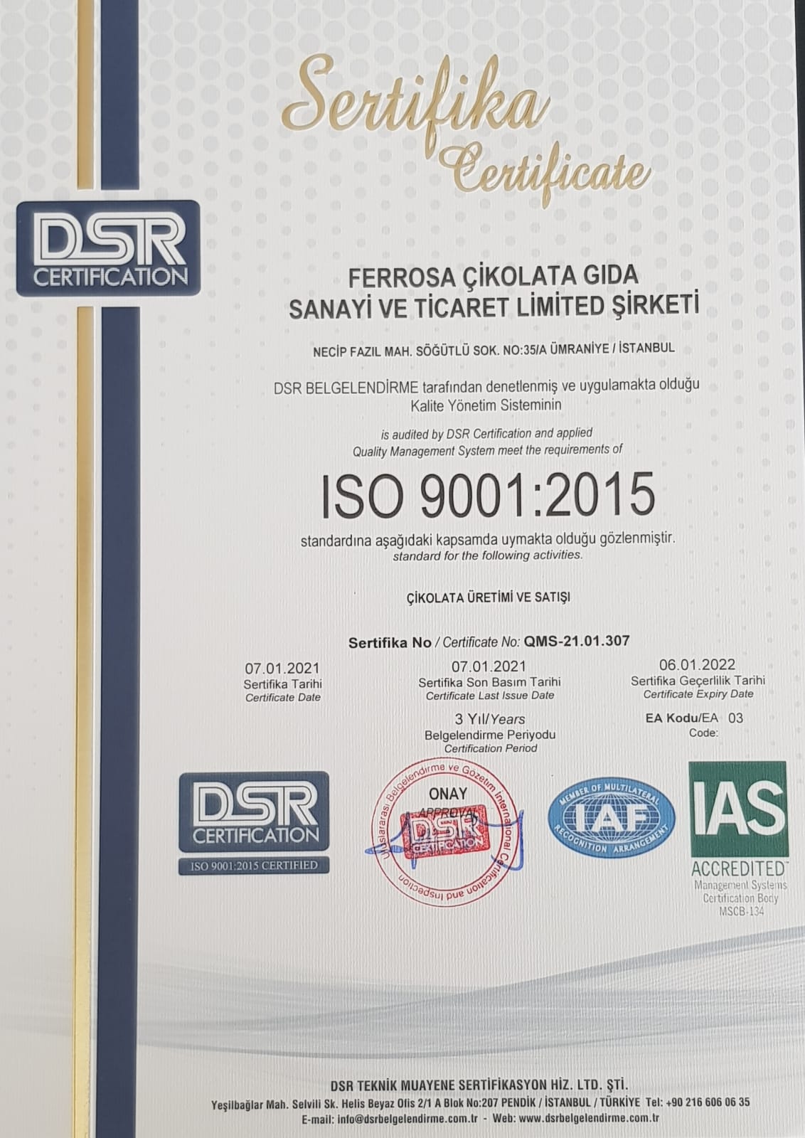 SERTİFİKALAR